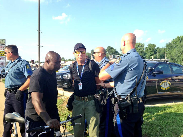 Getty photographer Scott Olson arrested at Ferguson protest, 18 August 2014.