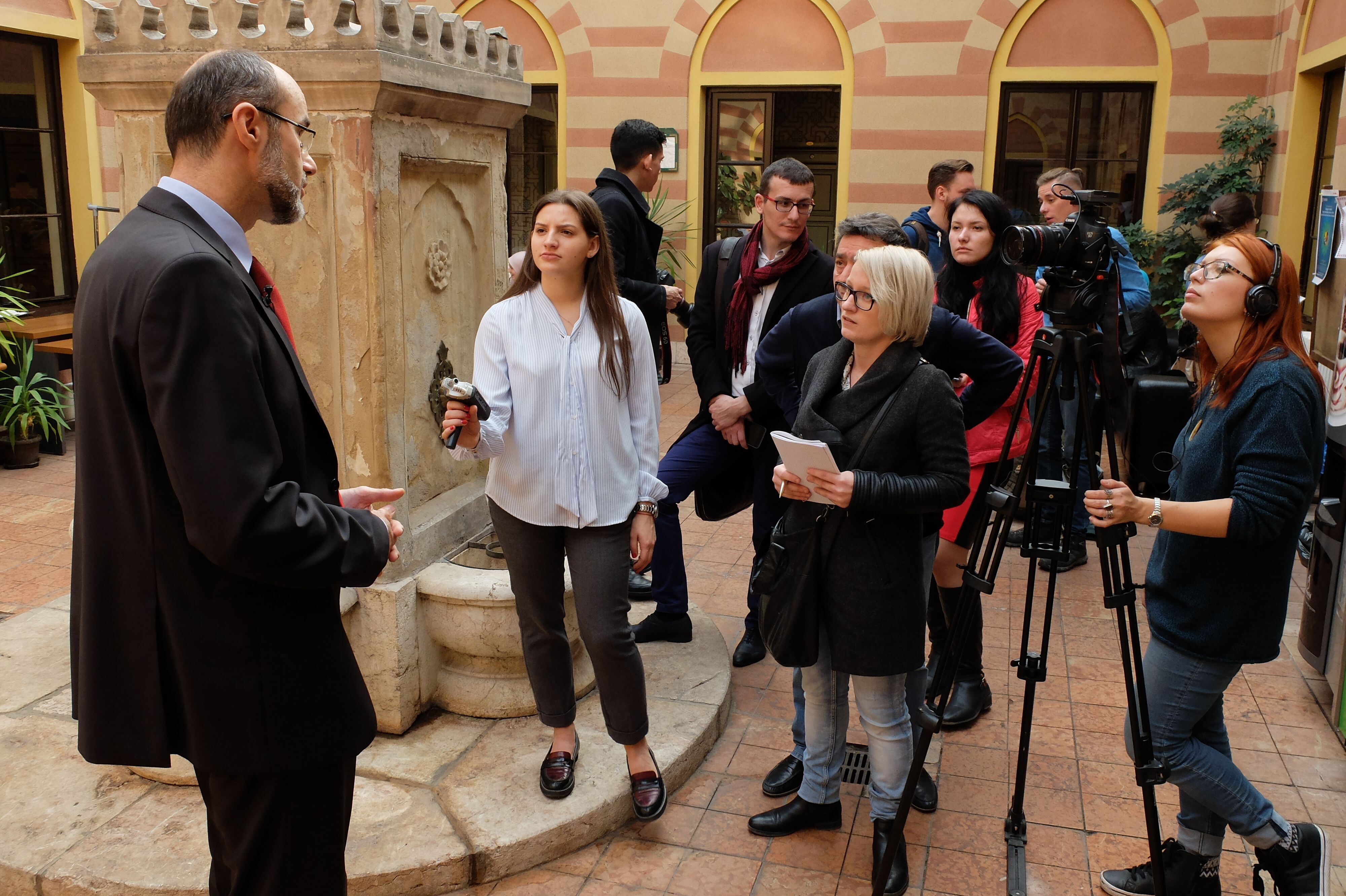Ahmet Alibasic, assistant Professor in the Faculty of Islamic Studies, University of Sarejevo, interviewed by young Russian and Ukrainian journalists, Sarajevo, Bosnia and Herzegovina, 24 October 2016.