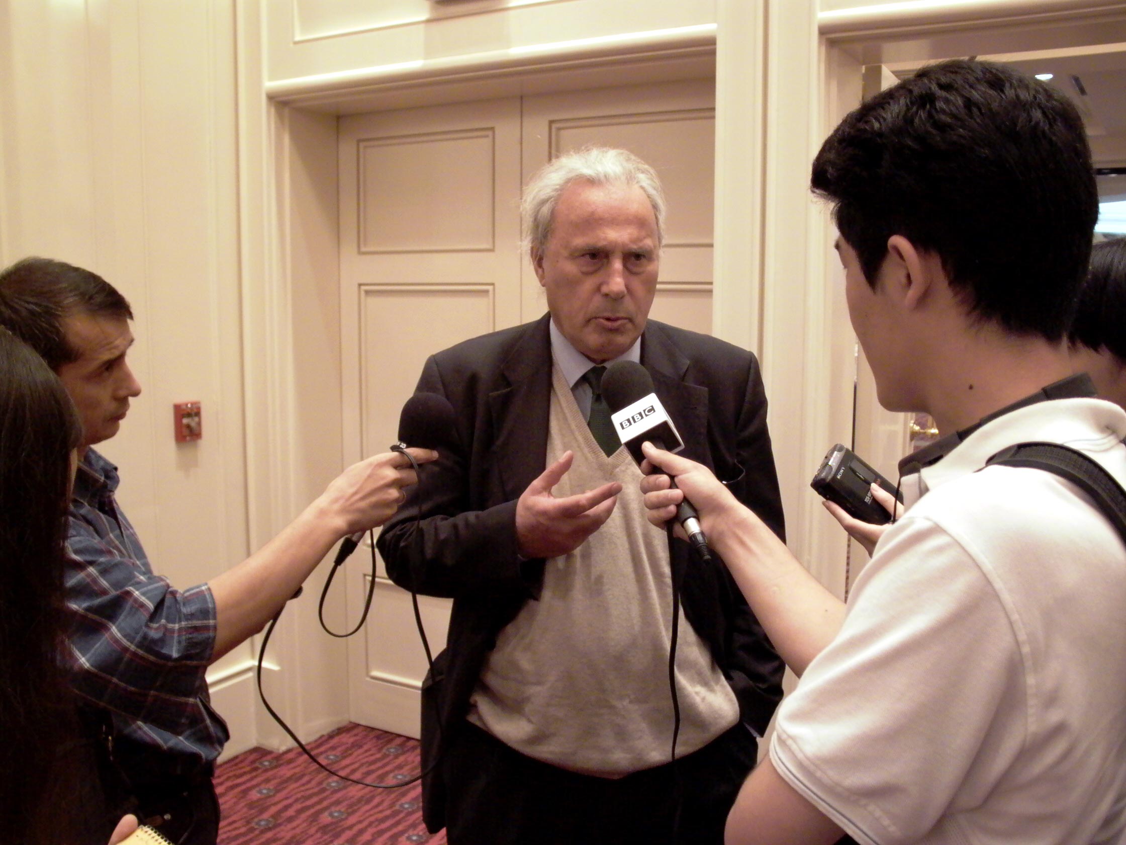 Freimut Duve, the OSCE Representative on Freedom of the Media, giving an interview at the margins of the Fourth Central Asian Media Conference in Tashkent, Uzbekistan, on 26 September 2002.