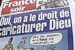 France Soir republished on 1 February 2006 cartoons that originally appeared on 30 September 2005 in the Danish newspaper Jyllands-Posten. The headline reads: "Yes, we have the right to caricature God."