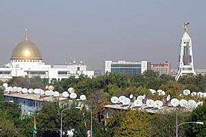 Satellite dishes compete for space on the rooftops in the Turkmen capital of Ashgabat, October 2005.