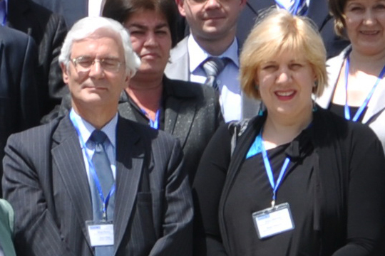 OSCE Representative on Freedom of the Media Dunja Mijatovic (r) with Ivar Vikki, Head of the OSCE Office in Tajikistan, at the 12th OSCE Central Asia Media Conference, Dushanbe, 26 May 2010.