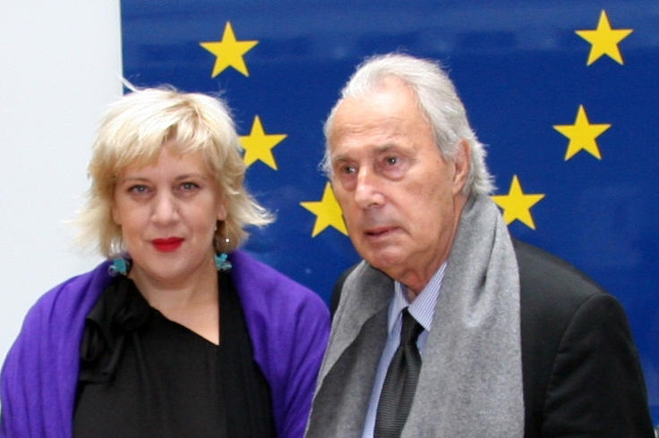 OSCE Representative on Freedom of the Media, Dunja Mijatović with the first OSCE Representative on Freedom of the Media, Freimut Duve, Vienna, 9 September 2011.