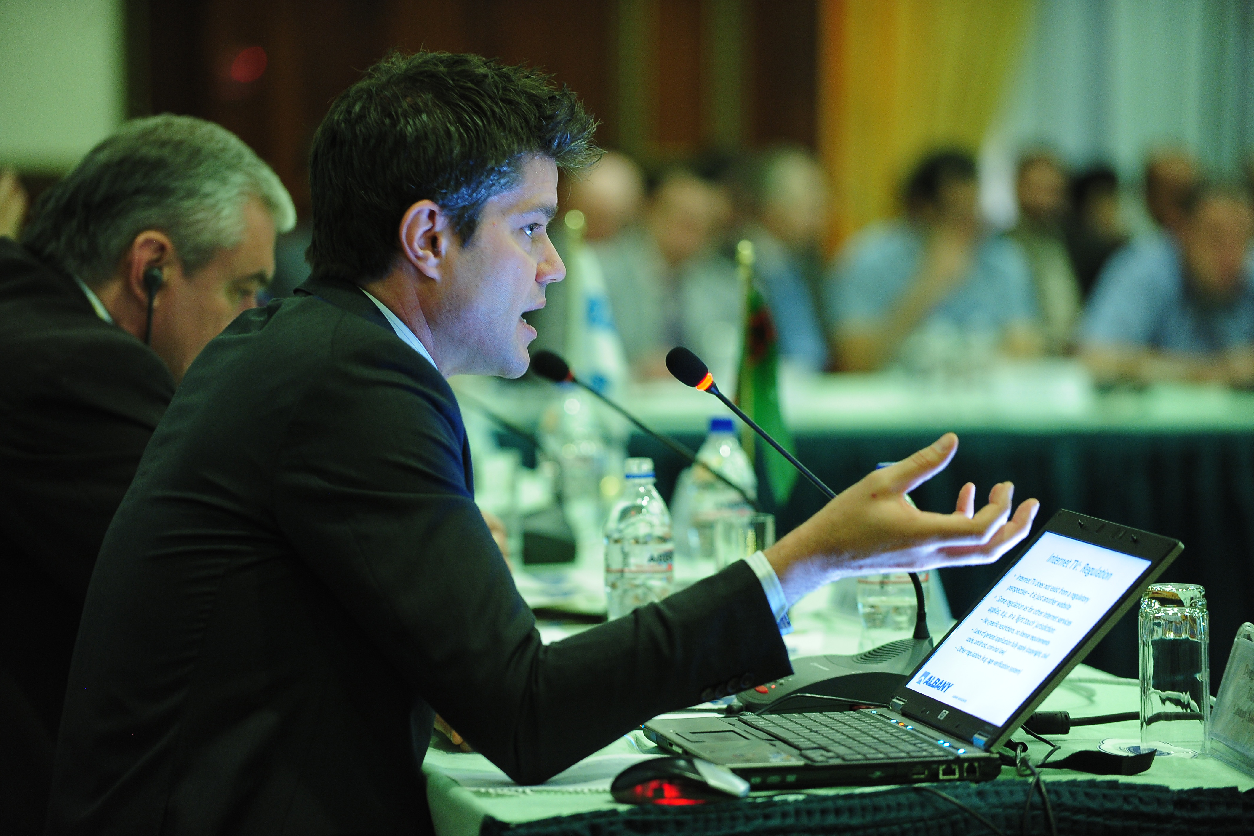 Douglas Griffin of Albany Associates discusses issues related to Internet and Internet Protocol television regulation at the 14th Central Asia Media Conference in Ashgabat on 4-5 July 2012.