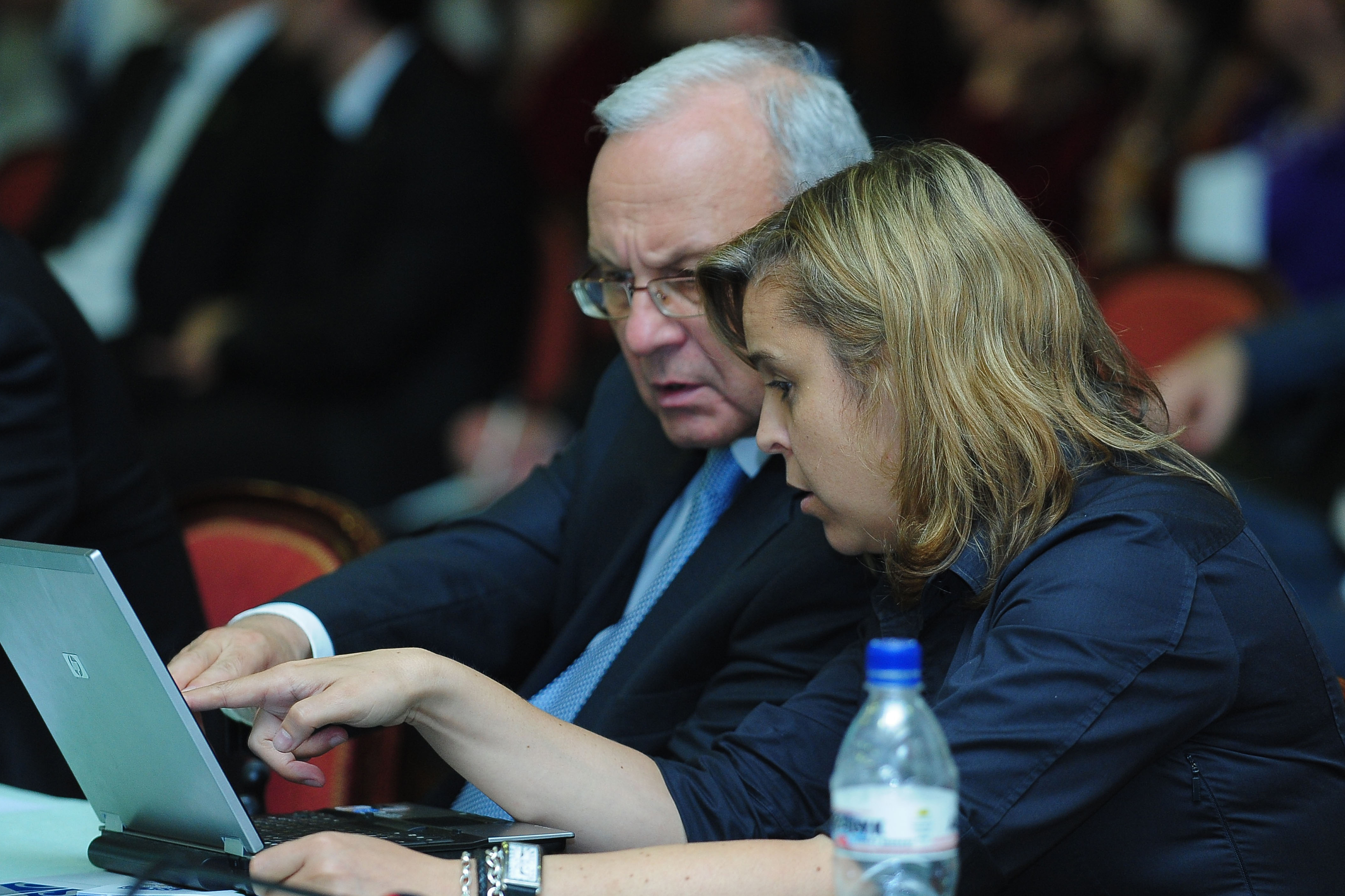 Head of the OSCE Centre in Ashgabat, Ambassador Ivo Petrov (l) and Representative on Freedom of the Media's Senior Adviser, Ana Karlsreiter at the 14th Central Asia Media Conference in Ashgabat on 4-5 July 2012.