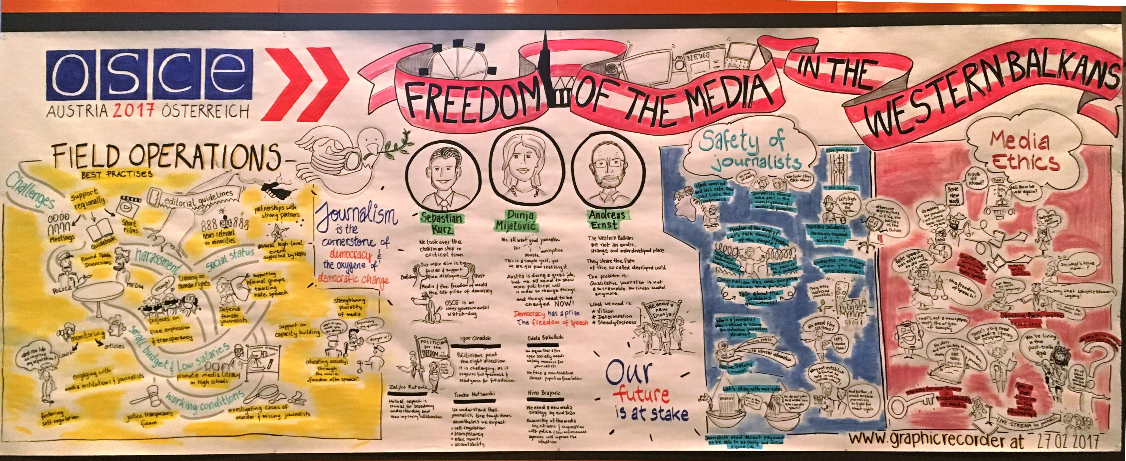 Graphic recording of the "Freedom of the Media in the Western Balkans" conference, held in Vienna on 27 February 2017