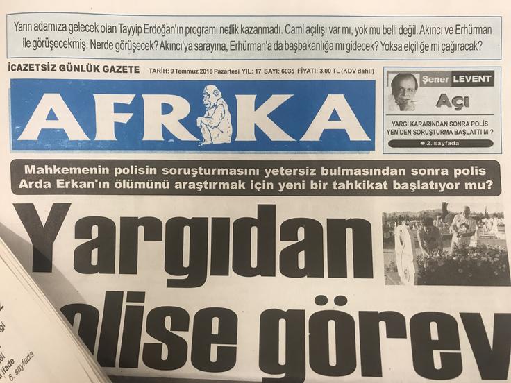 Picture of the cover of Turkish-Cypriot newspaper Afrika.