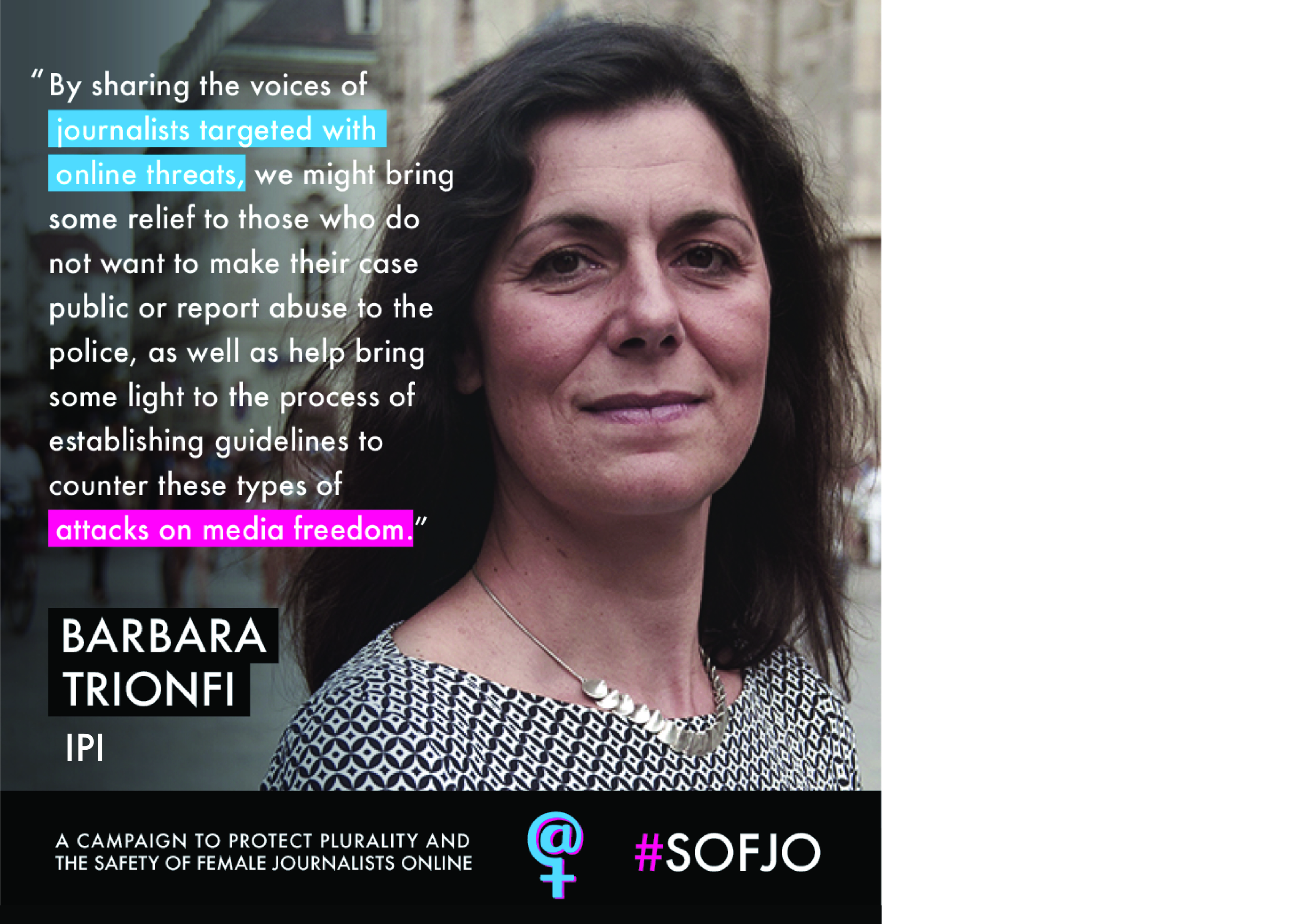 The #SOFJO campaign, spearheaded by the Representative on Freedom of the Media of the Organization for Security and Co-operation in Europe, sheds light on the issue of online abuse of female journalists. With the goal of protecting plurality in the media, the campaign supports female journalists, pushes for more comprehensive research on the topic and engages a wide audience, including policy makers, media houses and everyday citizens, in finding solutions to the problem.