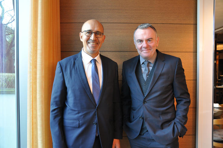 Harlem Désir (l), OSCE Representative on Freedom of the Media, and Noel Curran, Director General of the European Broadcasting Union (EBU), Geneva, 18 January 2019.