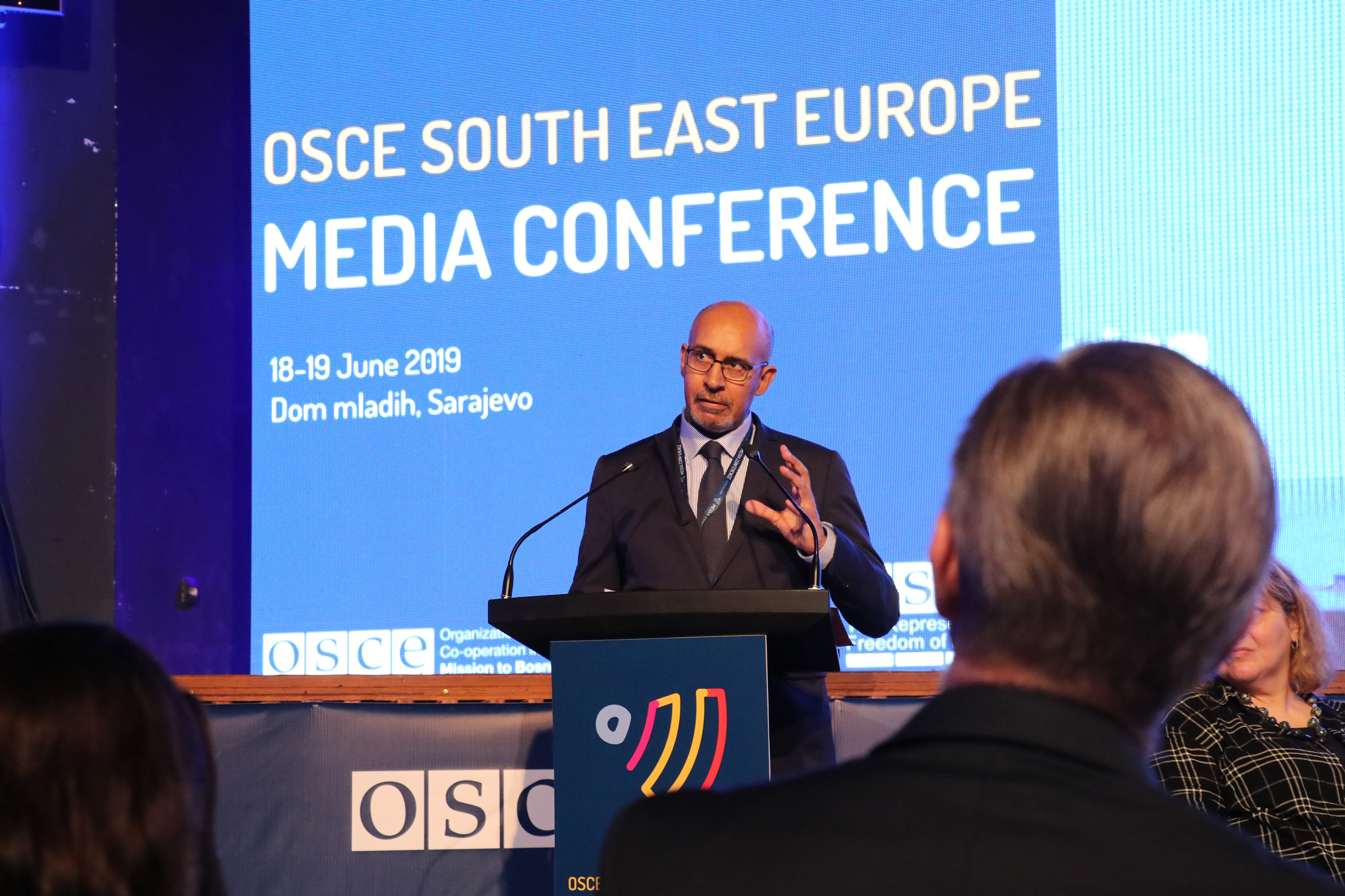 Harlem Désir, OSCE Representative on Freedom of the Media, addressing the participants at the opening ceremony of the 6th South East Europe Media Conference, Sarajevo, 18 June 2019.