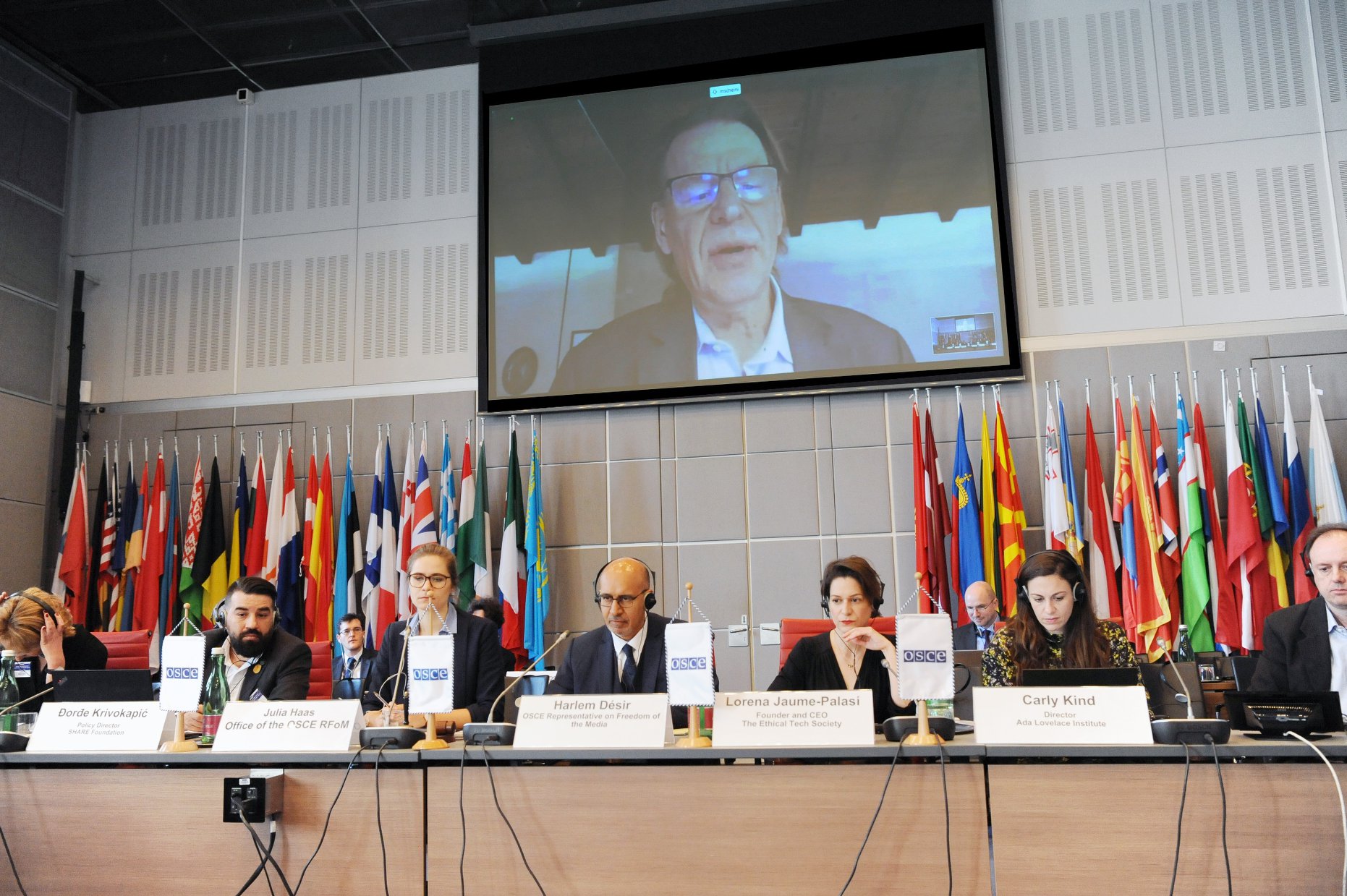Martin Scheinin, Professor of International Law and Human Rights, speaking via video call at the roundtable on the impact of artificial intelligence on freedom of expression, in Vienna, 10 March 2020.