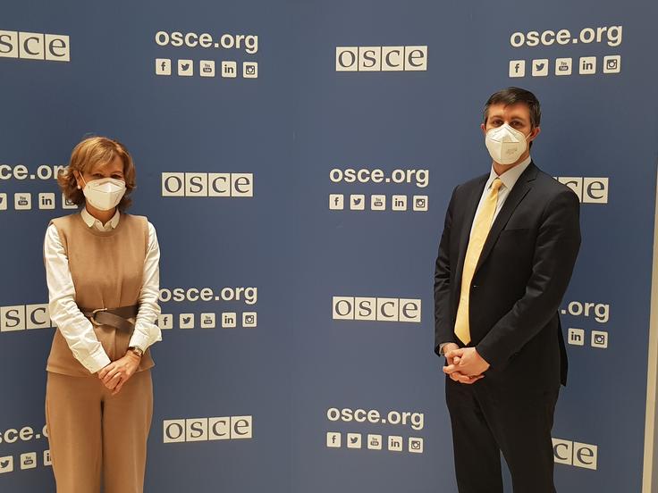 OSCE Representative on Freedom of the Media Teresa Ribeiro meeting with Ambassador of United Kingdom Neil Bush, 8 February 2021
