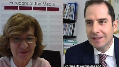 They also discussed challenges surrounding the ability of journalists to report freely during public assemblies, following a new Greek National Plan on the Management of Public Outdoor Assemblies, and a number of recent incidents of excessive use of force by law enforcement during such gatherings. Daskalopoulos affirmed that independent bodies are investigating cases of possible excessive force. He also explained that the intention of the National Plan is to improve the modus operandi of law enforcement in safeguarding the right of freedom of assembly, as well as to protect journalists reporting on such public assemblies.