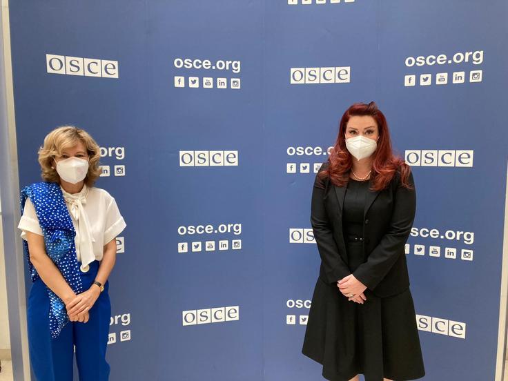 OSCE Representative on Freedom of the Media Teresa Ribeiro meeting with Armela Krasniqi, the newly elected Chairwoman of the Albanian Audiovisual Media Authority, Vienna, 30 July 2021.