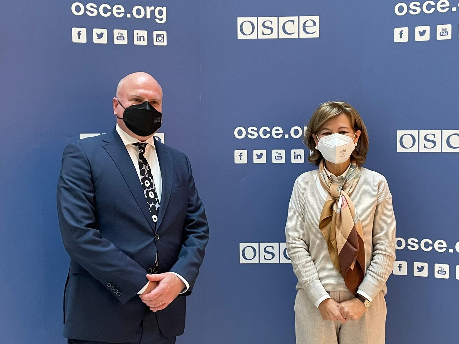 OSCE Representative on Freedom of the Media Teresa Ribeiro meeting with the Ambassador of Finland to the OSCE, Vesa Häkkinen, Vienna, 23 November 2021.