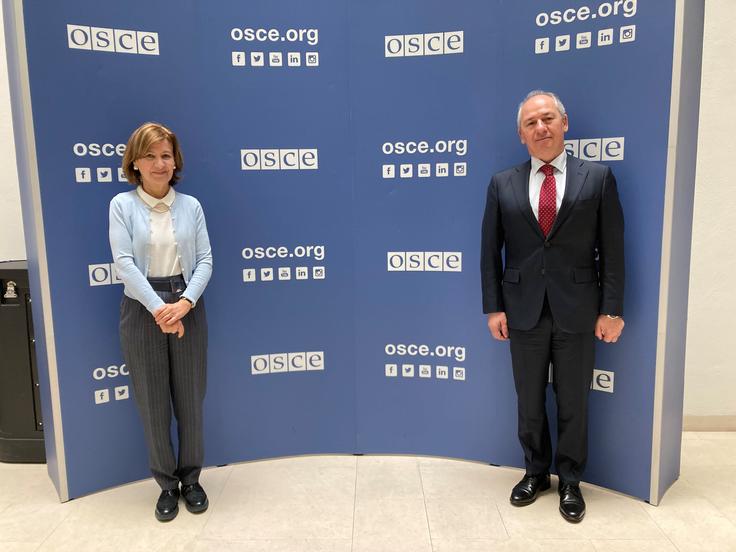 OSCE Representative on Freedom of the Media Teresa Ribeiro meeting with the Permanent Representative of Romania to the OSCE, Ambassador Stelian Stoian, 21 February 2022.