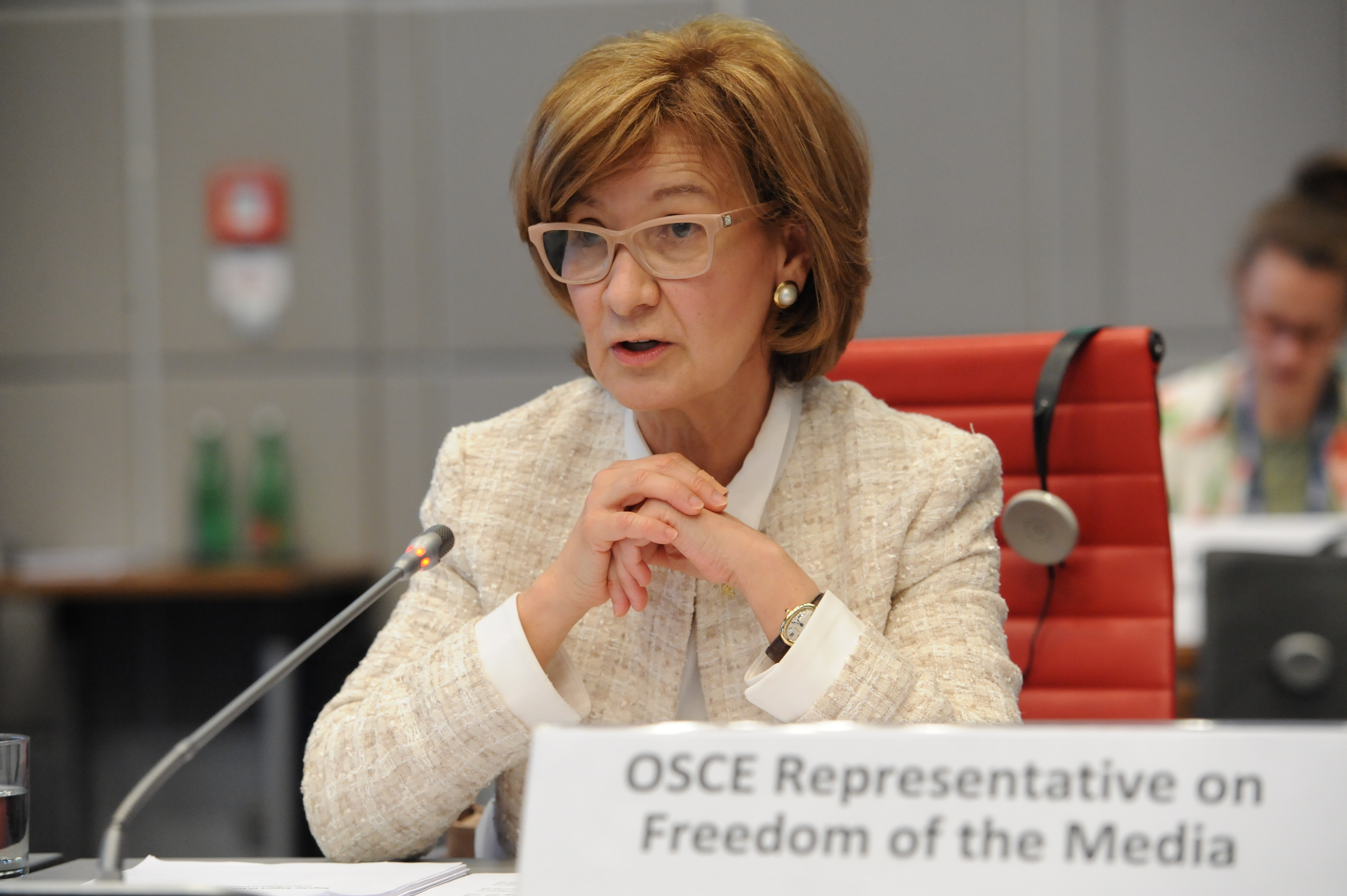 OSCE Representative on Freedom of the Media Teresa Ribeiro presenting her biannual report to the OSCE Permanent Council on 19 May 2022