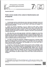 Parliamentary Assembly of the Council of Europe Resolution 2255 (2019)1: Public service media in the context of disinformation and propaganda