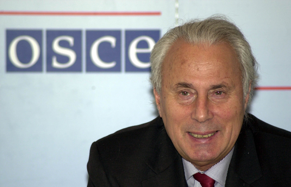 Фраймут Дуве, Представитель ОБСЕ по вопросам свободы СМИ, сообщил об ухудшении состояния свободы медиа в некоторых государствах-участниках в своем заключительном выступлении перед Постоянным советом, Вена, 11 декабря 2003 г. (Фото: ОБСЕ/Михаил Евстафьев)